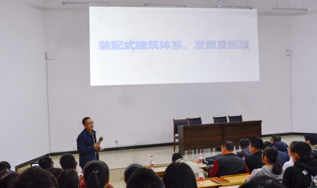 为拓展专业知识,提升自身能力,进一步提高公司师生对装配式建筑的了解与认识。3月12日下午,公司在阶梯教室举办了“装配式建筑结构体系、发展及瓶颈”主题的学术讲座,本次讲座由湖南大学建筑技术研究中心主任、副教授邓广博士主讲,学院负责人徐理主持,全院师生共同参与。
