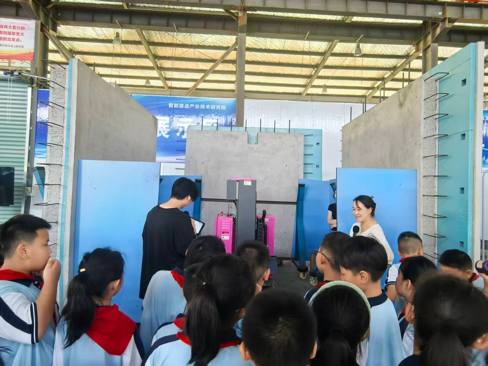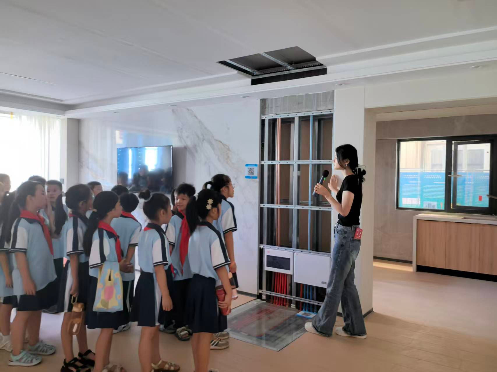 活动伊始,平台讲解员用童趣化语言,结合现场工业材料和工法楼,向孩子们科普了房地产建筑产业从“传统施工”到“科技建造”的转变,重点介绍了装配式建筑、绿色建材等核心创新技术。当孩子们看到“像搭积木一样盖房子”的装配式构件模型时,纷纷发出惊叹。