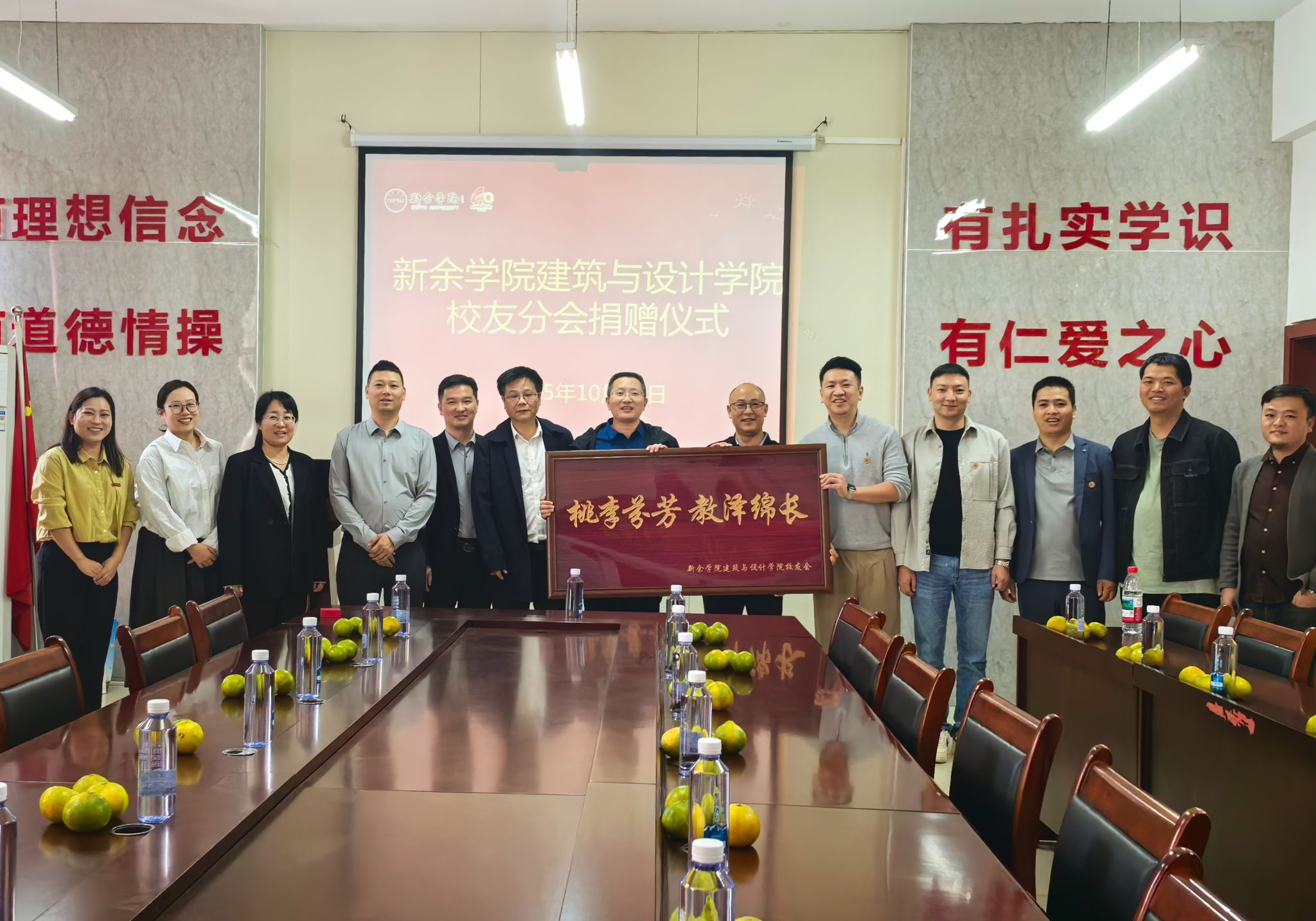 随后举行了捐赠仪式,2026年世界杯官网员工分会代表向学院捐赠镌刻 “桃李芬芳 教泽绵长”的牌匾,表达了员工对母校培育之恩的回馈,也象征着员工与母校之间牢不可破的情感联结。公司党政班子成员接受捐赠并致谢,表示将妥善珍藏牌匾,使其成为激励师生传承 “建德筑能,知行卓越” 校训精神的生动载体。