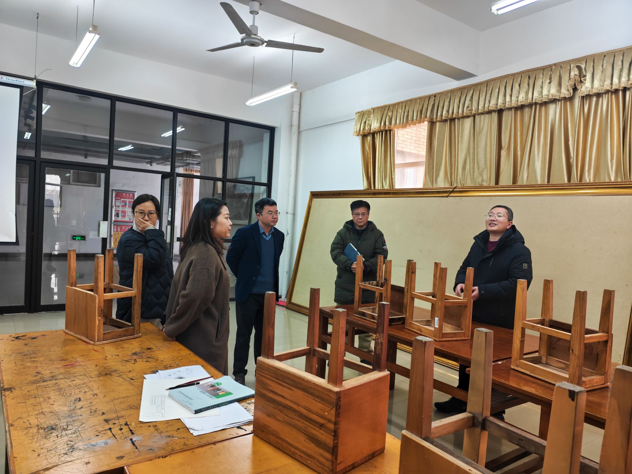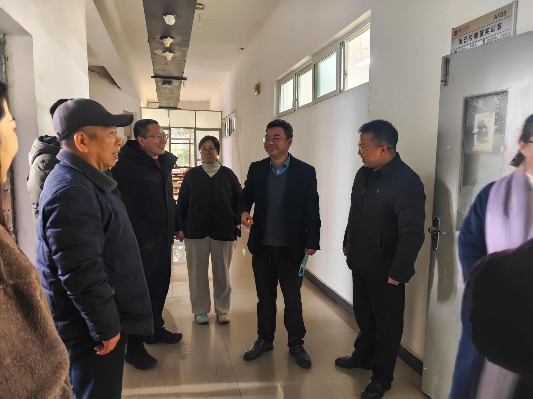 随后,黄益宾一行来到美术楼,实地察看了工作室建设情况,听取了工作室调整思路与发展规划,详细了解了空间布局、设施配置及实践教学开展情况。他对学院利用假期优化教学空间、改善育人环境的做法表示肯定,希望进一步完善工作室管理机制,更好发挥其在实践教学与创作中的平台作用。
