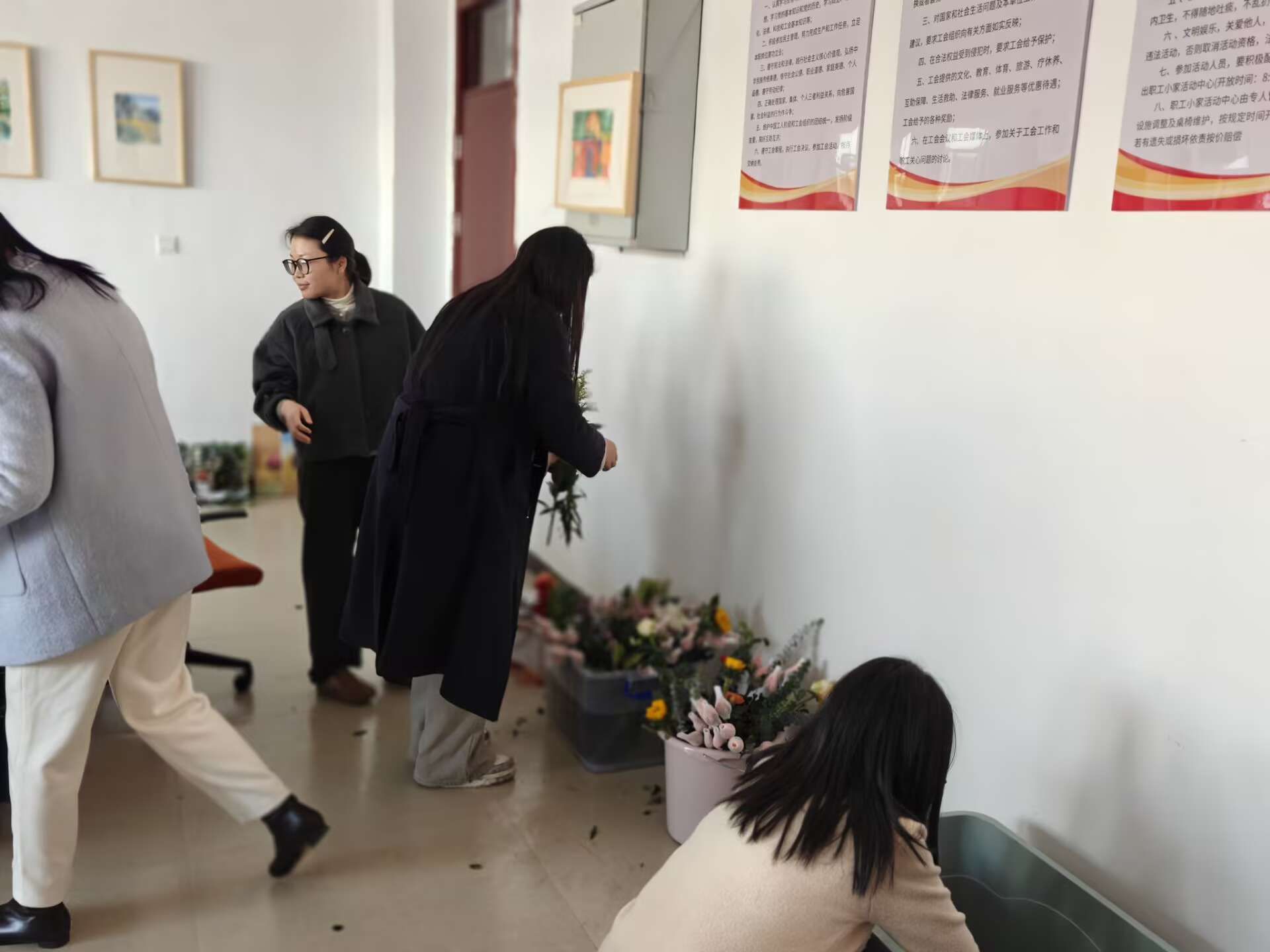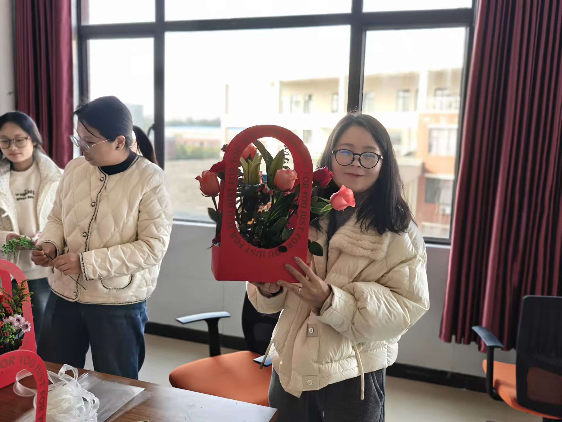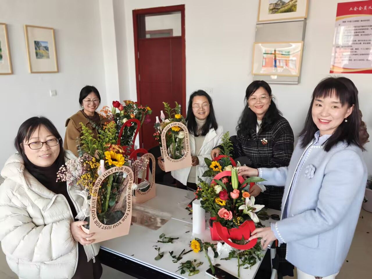 活动最后,女教师们手捧自己的花艺作品合影留念,镜头定格下了这一张张比春花更加灿烂的笑脸。花香与笑容交织,不仅装点了节日,也芬芳了整个春天。