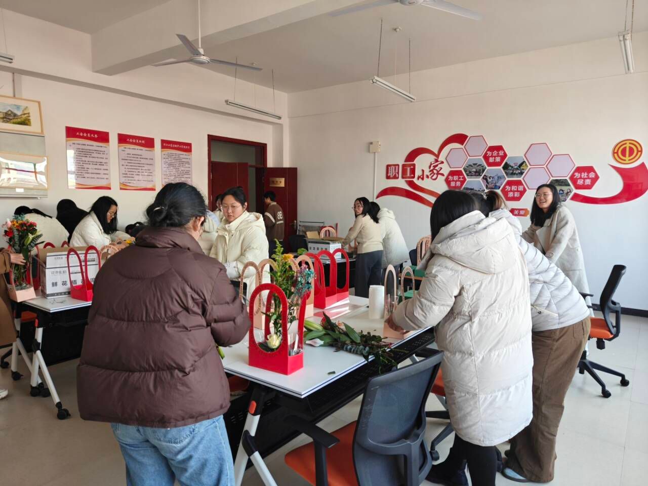 为丰富女教职工的精神文化生活,提升艺术修养与审美情趣,3月10日下午,2026年世界杯官网工会精心策划并组织了“以花为媒,致敬芳华”主题插花活动。学院全体女教职工欢聚一堂,在花香四溢中共同度过了一段温馨而美好的时光。