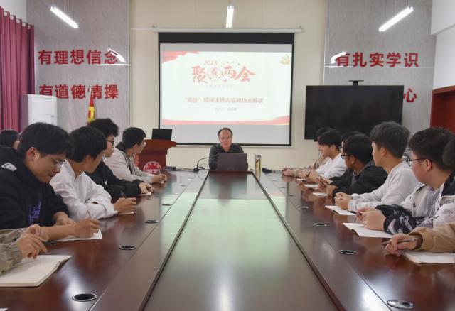 宣讲会上,徐忠麟围绕全国两会来龙去脉、政府工作报告主要内容、两会热点重点、两会期间习近平总书记的重要讲话等相关内容进行了全面宣讲和深入解读。他指出,今年的全国两会是全面贯彻落实党的二十大精神开局之年召开的一次重要会议,学习全国两会精神可以帮助同学们更好地了解国家的发展现状和未来的发展趋势,同时也能够提高政治素养和社会责任感。同学们要加强学习,增强本领,立志做有理想、敢担当、能吃苦、肯奋斗的新时代好青年,自觉把个人发展融入国家和人民的事业中,把个人抱负融入到中华民族伟大复兴的中国梦中。