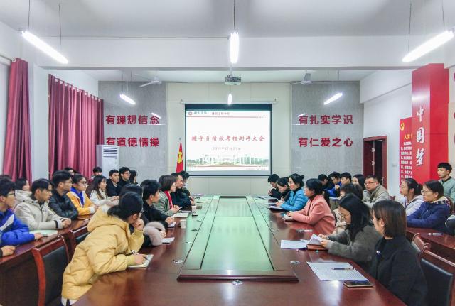 12月25日下午,公司于院会议室召开辅导员绩效考核测评大会。校团委副书记安雨、公司党委副书记钟益兰、副经理张小义、公司全体辅导员及师生代表共同参加了此次会议。