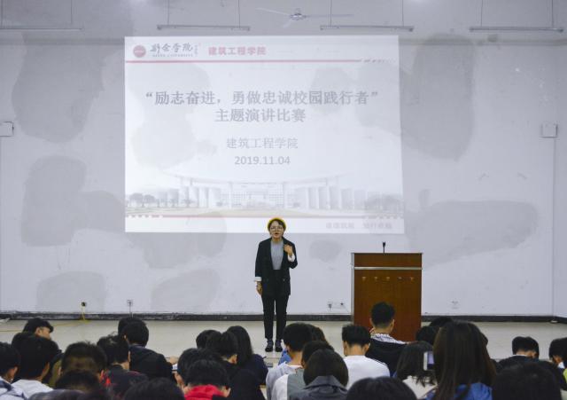 为深入学习贯彻十九届四中全会精神,积极响应公司“打造忠诚校园,争创全国文明校园”的号召,11月4日晚,公司于院阶梯教室举办“励志奋进,勇做忠诚校园践行者”主题演讲比赛,团委老师袁小清应邀担任评委,公司非毕业班全体员工共同参加。