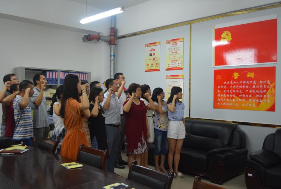 会后,全体党员面向党旗庄严地重温了入党誓词。