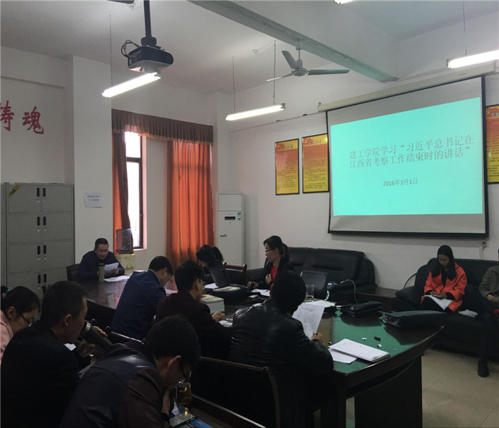 按照公司党委要求,3月1日下午,建工学院召开全体教师会议,传达学习习近平总书记视察江西重要讲话精神、学校中层以上干部会议内容,并安排部署2016年工作。