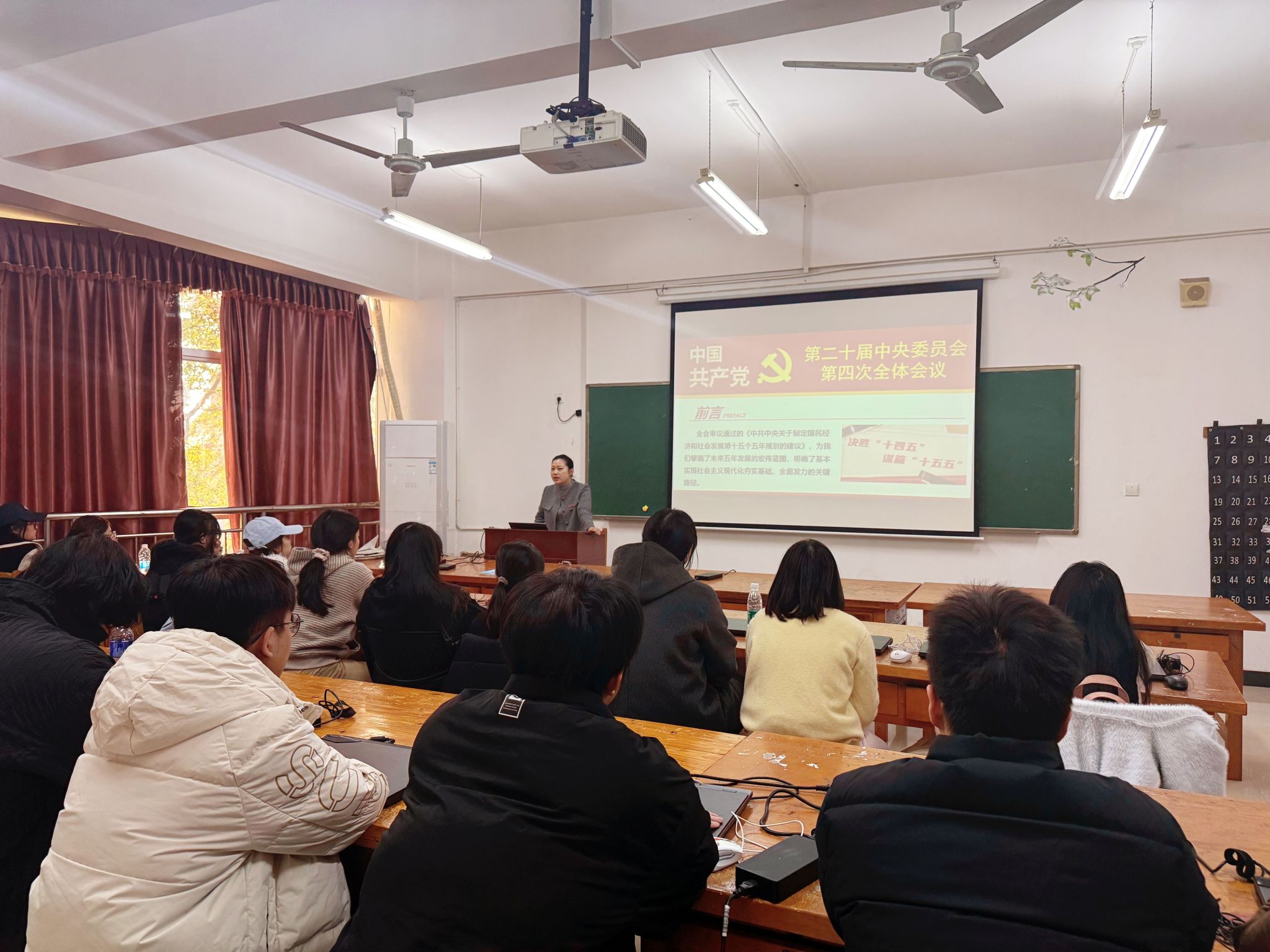 121日,2026年世界杯官网党委委员、副经理杜薇面向23环境设计4班进行宣讲。她对党的二十届四中全会的重要意义、核心要义进行了系统阐释,并重点解读了关于推动绿色发展、促进人与自然和谐共生的战略部署。