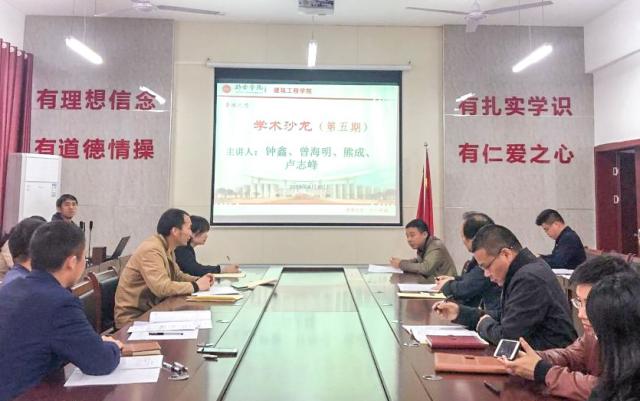 沙龙伊始,钟鑫老师向大家介绍“智能减速带”这一创新创业项目,同时分析其组成结构,并说明根据车速调节减速带高度,以减缓车速,进而保障司机及行人安全;随后曾海明老师由城市内涝现状并结合给排水科学与工程展开对“海绵城市”建设的思考,从国家层面向大家讲述了海绵城市的发展前景,并结合新余市的发展提出“下抛式绿地”设想;紧接着熊成老师向大家分享研究课题“集中式空调系统变风量与变水温协调优化节能效果研究”,并详细讲解了变水温调节对空调系统的影响;最后卢志峰老师向大家介绍了“虚拟仿真技术在土木施工教学中的应用探索”,并结合实例详细阐述了施工技术问题的解决办法。