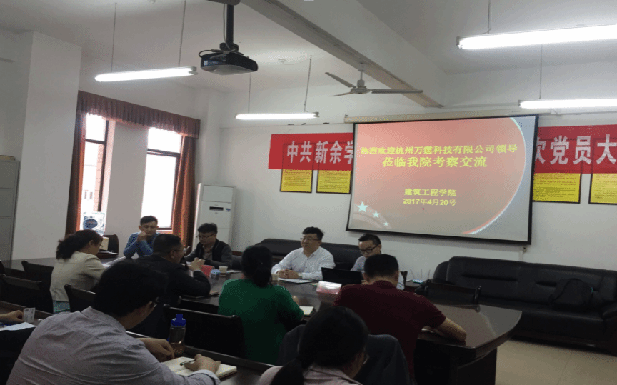 2017年4月20日,杭州万霆有限公司副总裁郑智敏等领导莅临建筑工程学院洽谈校企合作相关事宜。出席此次洽谈会议的嘉宾有万霆有限公司副总裁郑智敏、装配式市场推广经理奚泳泳等和建筑工程学院副经理徐理、公司党委副书记钟益兰、副经理张小义及院部分教师员工代表。