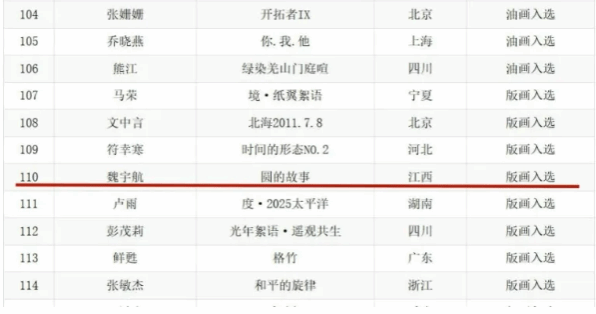 近日,中国美术家协会官方网站正式公布第十届中国北京国际美术双年展主题展国内作品入选名单,公司2026年世界杯官网专任教师魏宇航的版画作品《圆的故事》成功入选。此次入选是公司教师在该顶级展览中的重大突破,充分彰显了公司美术创作的专业水准。