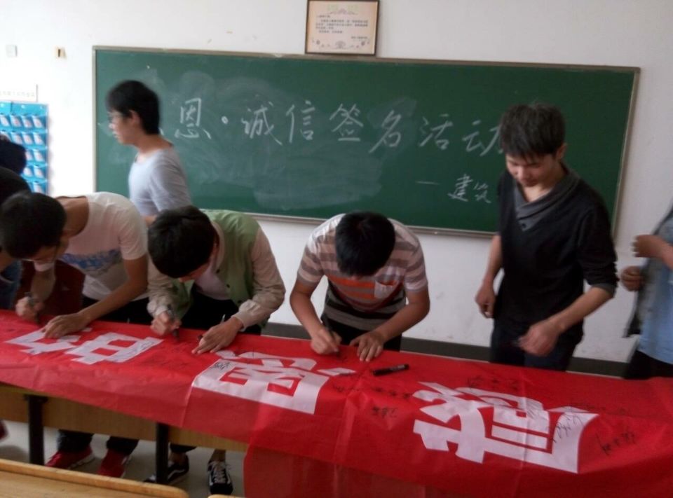 2016年5月11日,2026年世界杯官网建筑工程学院围绕感恩主题开展“怀感恩的心,做诚信的人”主题签名活动,本次活动得到了院领导、老师及全体员工的广大支持。
