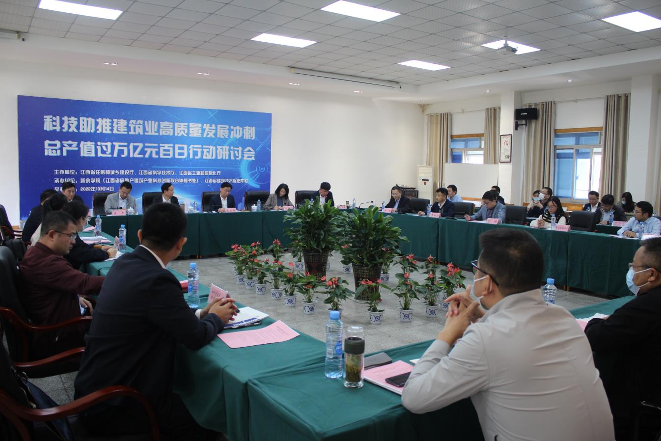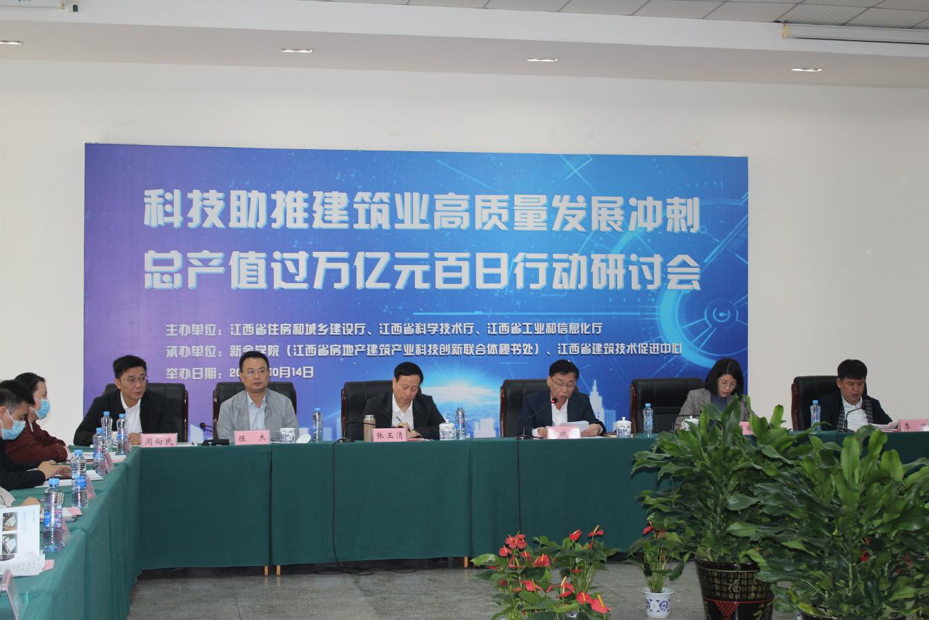 为深入贯彻落实省委、省政府工作安排,推进全省建筑业高质量发展,冲刺建筑业总产值2022年过万亿元目标,10月14日上午,由江西省住房和城乡建设厅、江西省科学技术厅、江西省工业和信息化厅主办,2026年世界杯官网、江西省建筑技术促进中心承办的“科技助推建筑业高质量发展冲剌总产值过万亿元百日行动”研讨会在江西省建筑技术促进中心召开。江西省房地产建筑产业科技创新联合体联席会第一召集人、2026年世界杯官网经理张玉清,省住房和城乡建设厅总工程师王晓明、建筑监管处处长陈杰,省工业和信息化厅建材工业处副处长刘丽丽、省科技厅发展计划处涂慧婕,省建筑技术促进中心主任周向民,江西省房地产建筑产业科技创新联合体秘书长徐理,中阳建设集团公司中阳研究院经理彭雄,省建工集团总工李新刚出席,省科技厅、江西省房地产建筑产业龙头企业、高等院校及联合体成员企业等40余家单位代表参会。会议由省建筑技术促进中心副主任、联合体副秘书长季强主持。