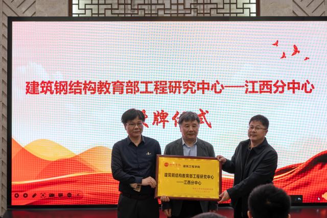 会议后半程,进行建筑钢结构教育部工程研究中心江西分中心授牌仪式与多层装配式钢结构建筑体系结构验证与检测横向课题签约仪式。
