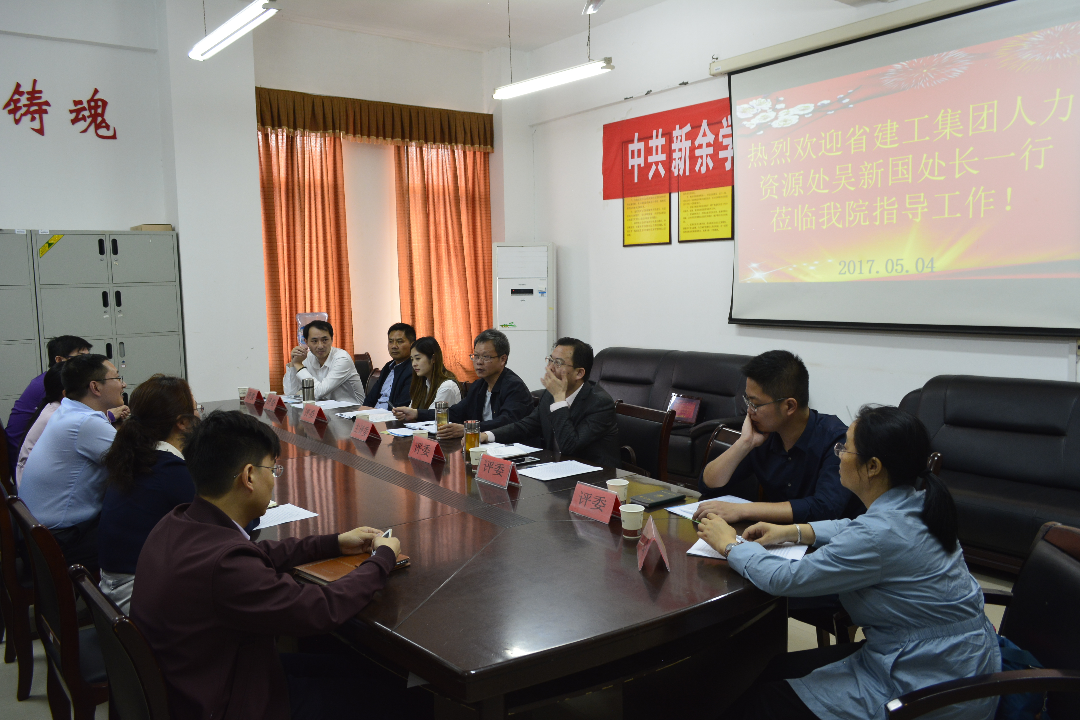5月4日上午,江西省建工集团人力资源处吴新国处长等一行八人莅临公司指导工作,建工学院副经理徐理,副书记钟益兰,团委书记钟鑫出席会议,建工学院部分教师及第二届“省建工国际班”全体同学参加了会议,会议由副经理徐理主持。