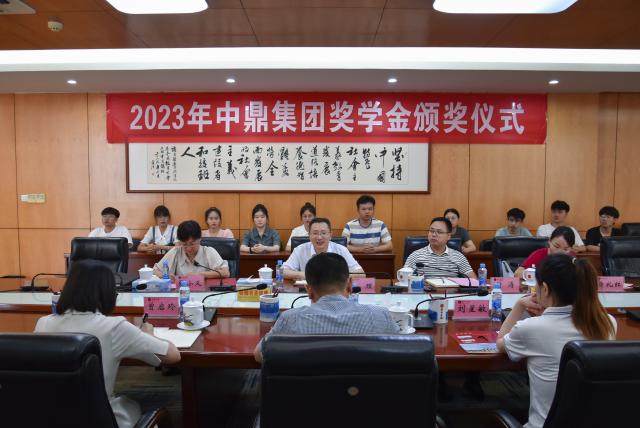 颁奖仪式上,建筑工程公司党委书记、经理徐理从办学有特色、专业有特点、人才培养有特长三个方面介绍了公司转型发展历程及取得的显著成效,指出中鼎集团奖学金既是校企双方合作深度推进的象征,更是中鼎集团对双方合作的肯定和支持。中鼎集团党委委员、副总经理姚郭亮表示中鼎集团奖学金既是中鼎集团“一言九鼎”企业文化的践行,更希望可以转化为员工日后勤奋学习的不竭动力,为校企双方深入开展科技合作奠基。