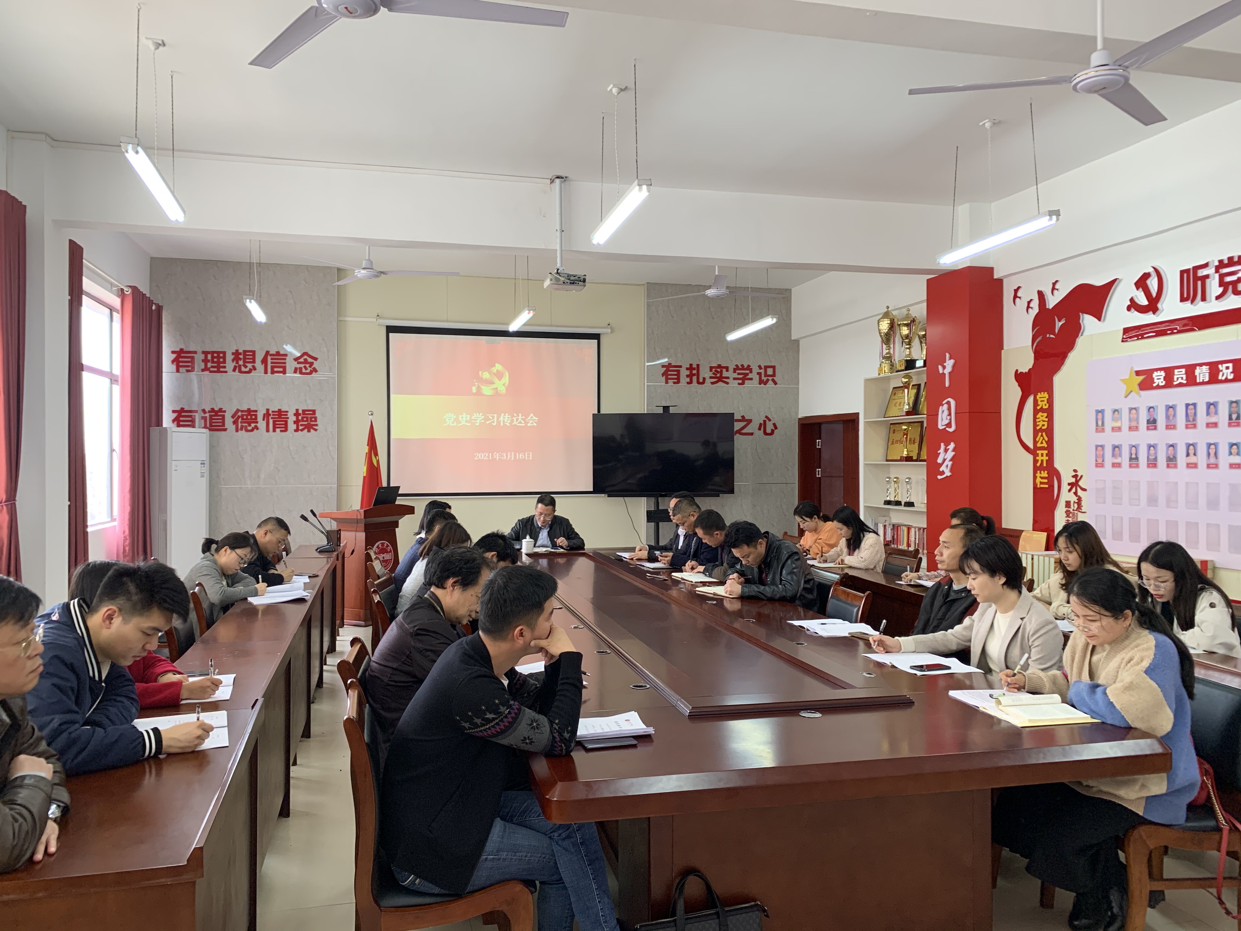 3月17日下午,公司在院会议室召开党史学习传达会,公司党委书记、经理徐理同志主持会议,院全体教师参加本次会议。