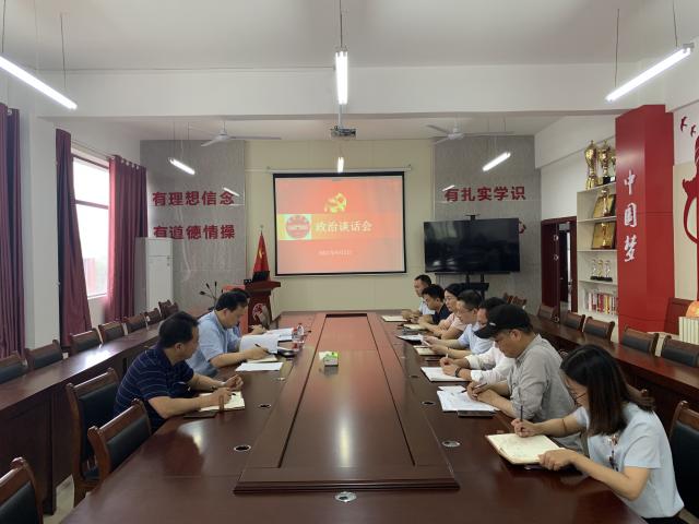 6月2日下午,公司党委书记刘冬到公司开展政治谈话,公司党委委员、副董事长龚丽春,公司党委委员、宣传部长周文生陪同,公司党委班子成员参加会议。