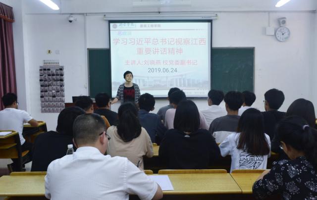 ​  为进一步学习贯彻习近平总书记视察江西的重要讲话精神,日前,公司党委副书记刘晓燕于公司党员活动室为公司师生党员上了一堂以“学习习总书记视察江西的重要讲话精神”为题的党课。