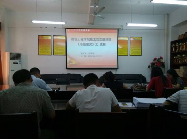 6月21日下午,公司教工党支部在公司党员会议室开展《浴血荣光》之“选择”主题党课教育活动,活动由教工党支部书记廖菲菲老师主持,教工党支部全体党员参加。