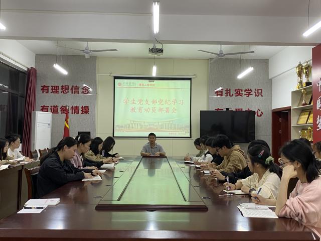 会上支部书记李鹏鹏领学了习近平总书记关于党纪学习教育的重要讲话和重要指示精神、中央党的建设工作领导小组会议精神、省委和学校关于开展党纪学习教育有关精神,传达了《中共中央办公厅关于在全党开展党纪学习教育的通知》,随后对《中国共产党纪律处分条例》进行了详细解读,并对支部如何开展党纪学习教育作了具体部署。