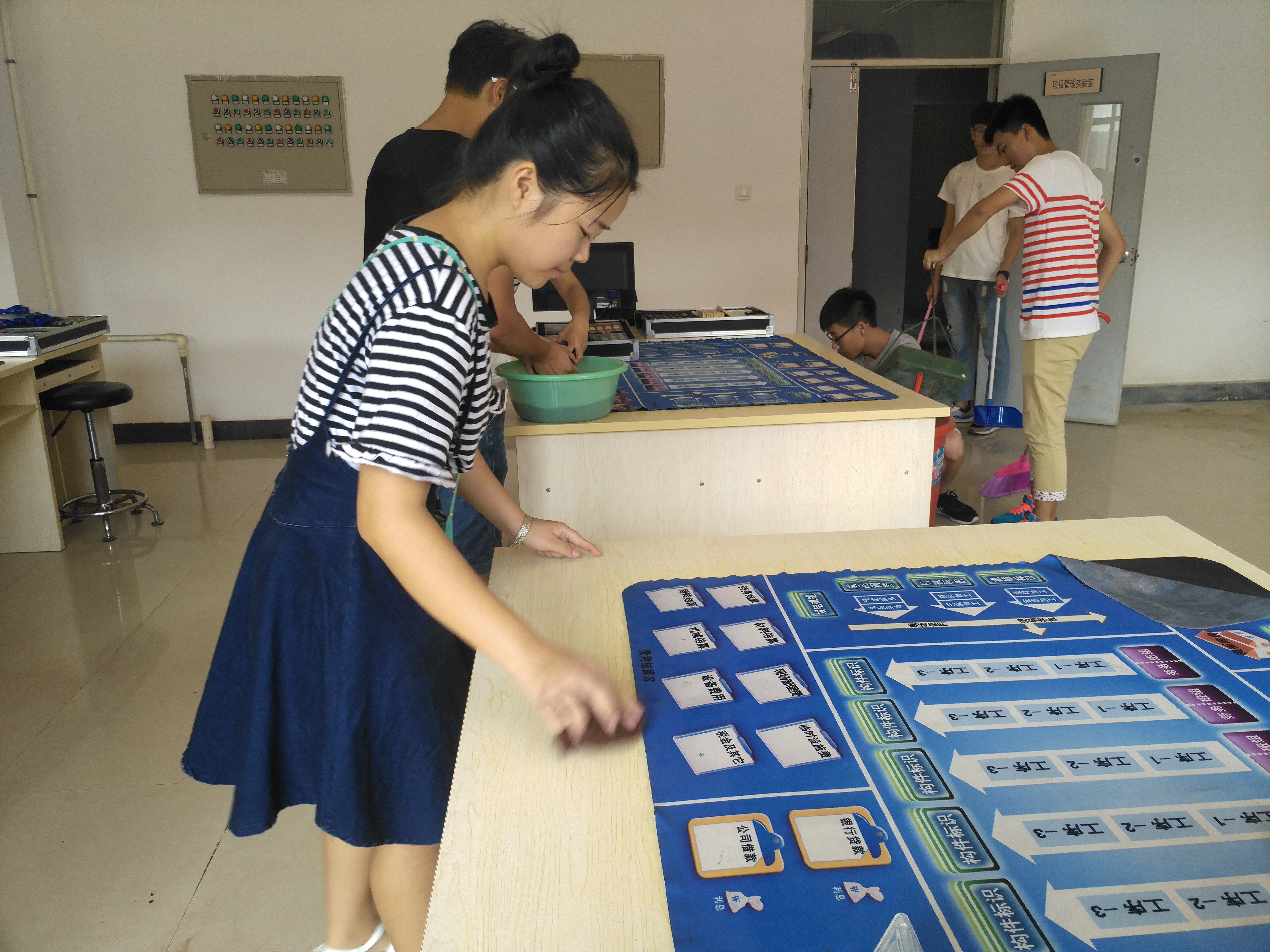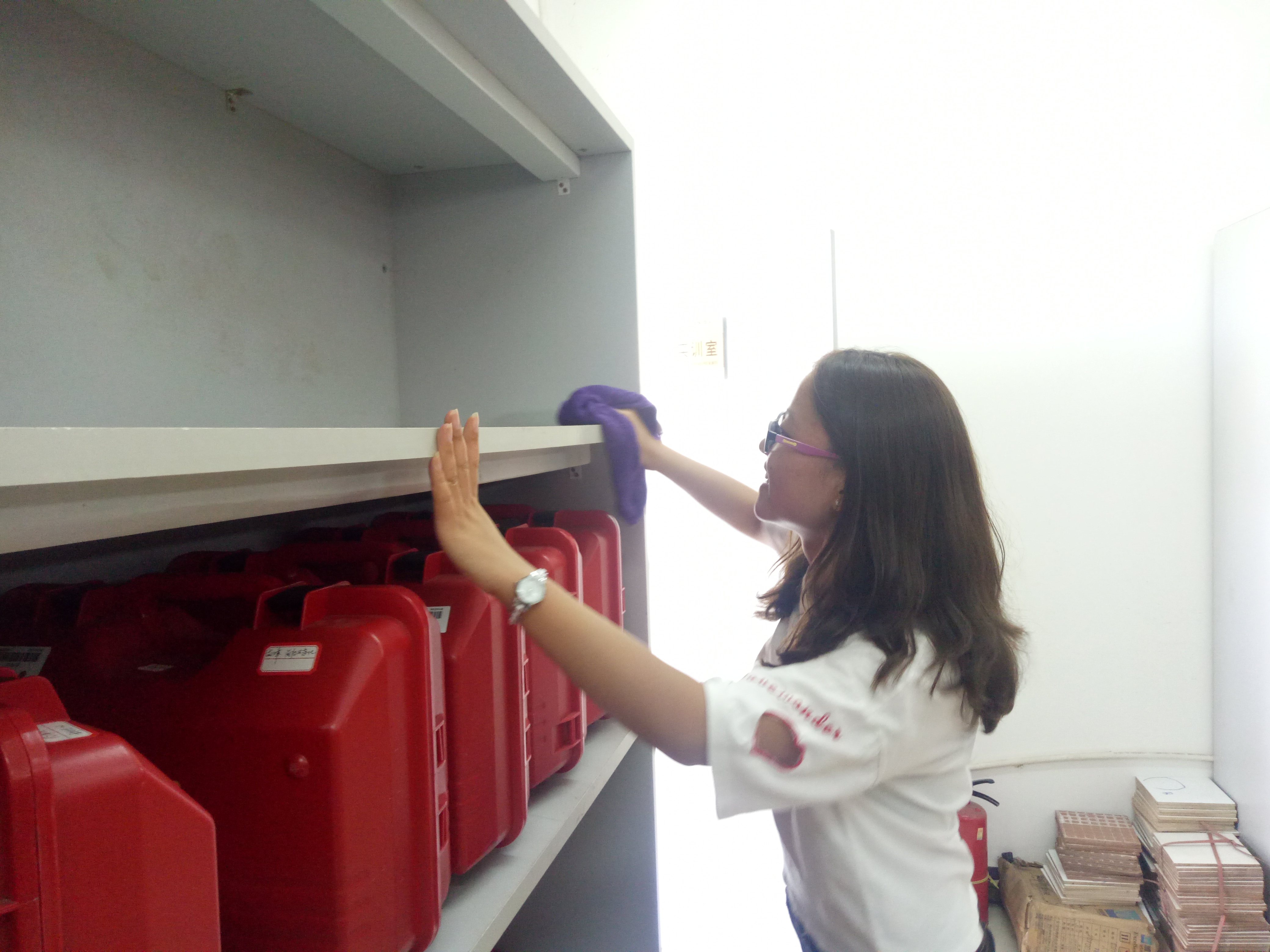 在学院员工党支部老师的安排下,大家分工明确、配合默契,各就其位。虽然气候闷热,但大家热情高涨、态度积极,这一切丝毫没有影响大家的工作效率。在老师的带领下,同学们用了两个半小时的时间,把实验室打扮得清爽洁净,焕然一新,大家无不被“众人拾柴火焰高”的工作效率所折服,这也在无形间验证了团结协作在活动中的重要性,大家坚信:只要同心协力,没有克服不了的困难。