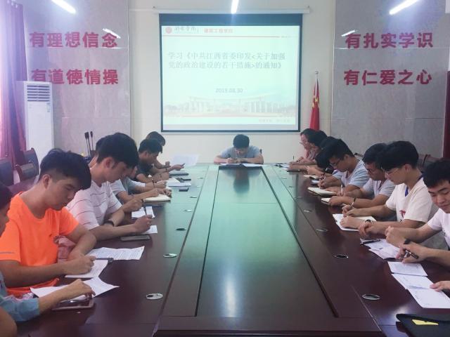 会上,钟鑫同志传达习近平总书记7月9日在中央和国家机关党的建设工作会议上的重要讲话精神与7月15-16日在内蒙古考察并指导开展“不忘初心、牢记使命”主题教育的重要讲话精神,并带领党员学习《中国共产党章程》、《习近平新时代中国特色社会主义思想学习纲要》、《关于新形势下党内政治生活的若干准则》和《中共江西省委印发< 关于加强党的政治建设的若干措施>的通知》(赣发〔2019〕15号),会上还集中学习了“肃清胡高平案毒害、建设新余风清气正良好政治生态”工作有关精神和全市“党建+城乡供水一体化”工作有关精神。最后,全体党员进一步学习了省委十四届八次全体(扩大)会议精神和市委八届八次全体(扩大)会议精神。