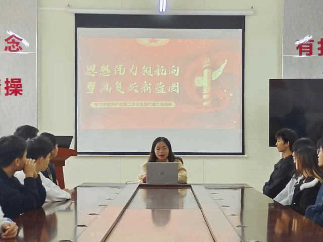为深入学习贯彻党的二十大精神,将党的二十大精神融入公司学子的思想教育的建设。近期,公司四位青年辅导员李鹏鹏、黄礼红、雷子岚、李丹深入公司各个团支部,开展党的二十大精神宣讲活动。