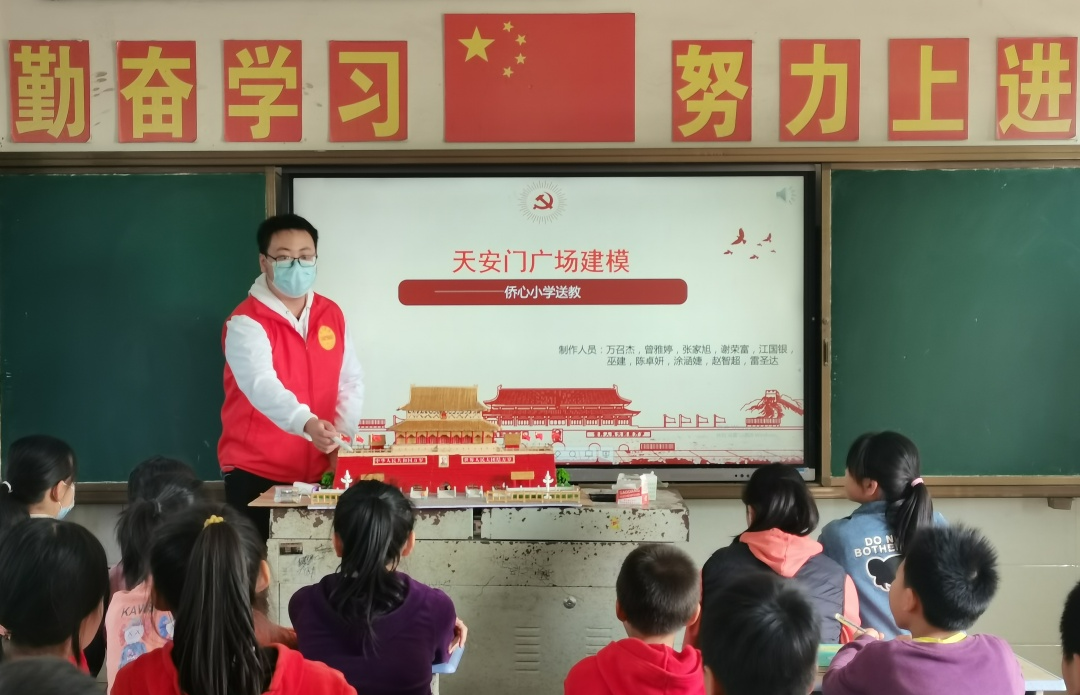 11月1日下午,“青春之光”小鲁班志愿服务队前往高新区马洪办事处侨心小学开展1+1志智双扶志愿服务活动,本次活动由雷圣达同学主讲。