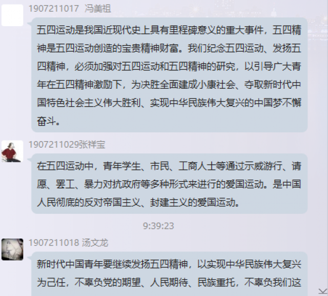 此次课堂思政教育激起了公司学子的强烈共鸣,大家纷纷表示会始终牢记习近平总书记的谆谆教诲,不断提高自身综合素质,争做走在时代前列的奋进者、开拓者、奉献者,让青春在奋斗中锻造出符合时代进步的精神气质,让“五四精神”放射出更加夺目的时代光芒,在实现中国梦的伟大实践中书写别样精彩的人生。