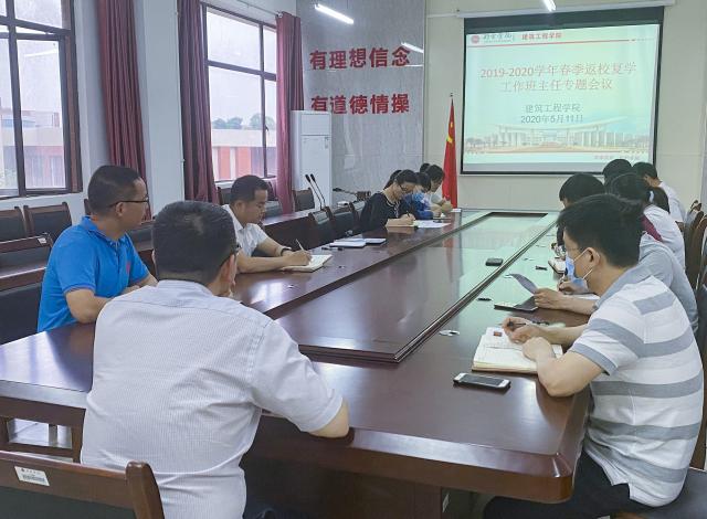 战鼓催征,时不我待。为了贯彻落实学校关于员工返校复学的严控部署会议精神,保证员工安全、有序返校,5月11日下午,公司在会议室召开2020年春季学期员工返校班主任工作会议,公司党委书记、经理徐理主持会议,公司党委副书记吴发根、员工管理科科长钟鑫及全院班主任参加会议。