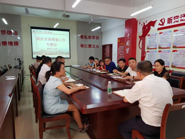 此次专题会加强了全院坐班教师和班主任的安保维稳工作的责任意识和担当意识,为度过一个欢乐而安全的国庆节打下了基础。