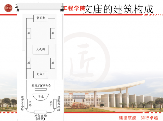 活动中,熊含梦老师向大家分享了我国古代祭祀中最高级别的建筑--孔庙、文庙,并通过大量实景图片对其建筑构成进行了细致的讲解;而柴路路老师围绕苏州博物馆新馆展开讲说,不仅介绍了苏州博物馆传统与现代完美融合的创新式设计理念,同时对其建造技术、造型艺术、育人思想等方面进行了深度剖析;崔丹丹老师则在介绍西柏坡中共中央旧址大院平面布局的基础上将中共中央旧址大院的建筑特点与红色文化层层结合,向同学们传述了“两个务必”的西柏坡精神,勉励大家要满怀信心地克服困难,迎接挑战。
