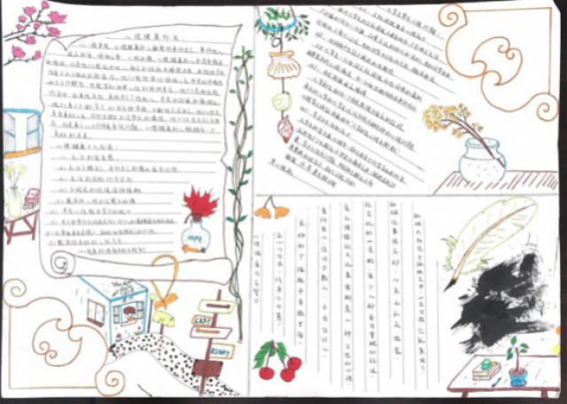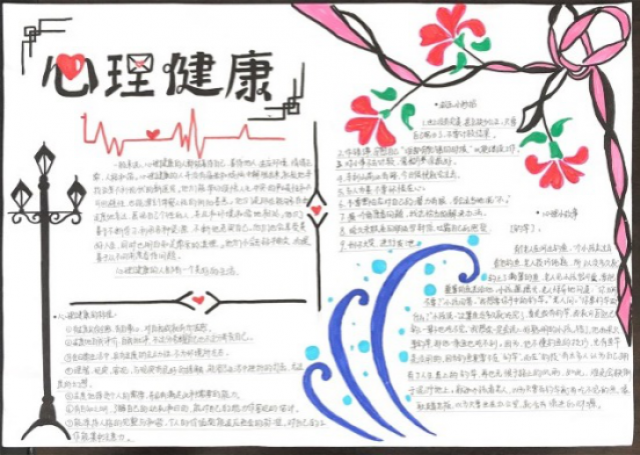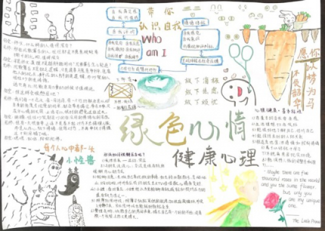 活动中,各班级手抄报内容丰富、绘图美观,构思新颖,并在手抄报中融入了自己对心理健康教育的理解,具有较强的艺术性和教育意义。同时,同学们收集了许多与心理健康有关的资料和图片,对心理健康教育有了更加深刻的认识,也为我们心理健康文化节活动增添了一抹绚丽的色彩。