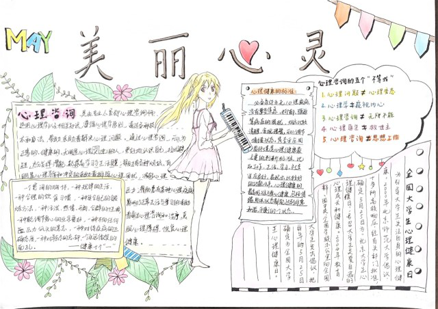 为进一步加强公司员工心理健康教育,提升员工心理素质,4月22日至5月8日,公司开展以“绿色心情,健康心理”为主题的心理手抄报评比活动。