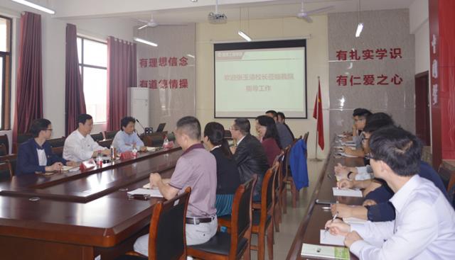 5月14午,张玉清董事长一行莅临我院调研并开展师生座谈会,公司党委书记、经理徐理党委副书记钟益兰、副经理张小义等院领导、教师和员工代表参加座谈会。