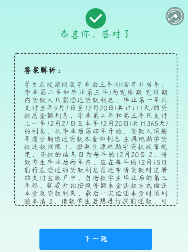 公司对本次线上问答活动给予了高度重视,精心制作了征信金融知识网络问卷以帮助公司学子深入了解征信基本知识和权益、增强个人财产保护意识等,并针对助学贷款注意事项、诚信还款等方面进行了细致宣传,还结合金融小故事展示了多种诈骗手段,告诫公司员工提高警惕,谨防诈骗。