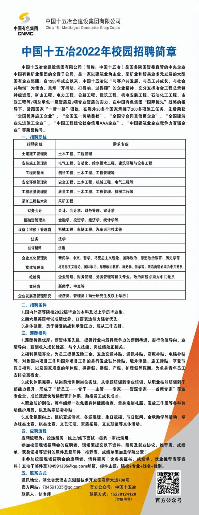 为进一步做好公司2022届毕业生春季就业工作,现将中国十五冶2022年校园招聘简章公示如下。