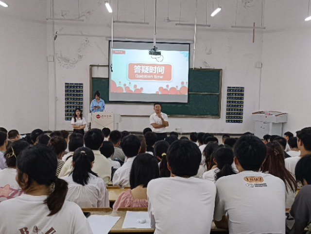 随后宣讲人以PPT的形式为大家详细介绍了公司的规章制度、福利待遇、企业文化、现有产业结构、未来发展等内容,并通过详解公司的薪资待遇、未来发展、企业文化建设等多方面的内容激起了同学们的兴趣和热情。宣讲人还就同学们提出的疑问一一进行解答,现场气氛火热。